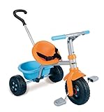 Be Fun Mixte SMOBY Descriptif : Tricycle cadre acier - grande selle réglable sur 3 positions - pédales antidérapantes, grande benne basculante - blocage de direction - limiteur de rotation du guidon assurant une grande stabilité - roues crantées - roue avant équipée d'un dispositif roue libre - canne réglable sur 3 positions, amovible - ceinture de sécurité